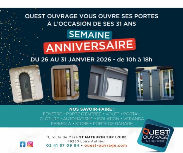 C’est le moment de fêter ça ensemble ! Du lundi 26 au samedi 31 janvier 2026, Ouest Ouvrage célèbre son anniversaire et nous avons préparé une semaine exceptionnelle !